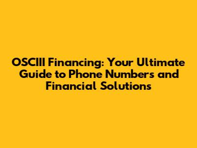Unveiling OSCIII Financing and Its Crucial Phone Number