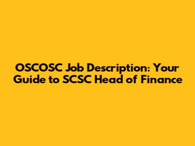 OSCOSC Job Description: Your Guide To SCSC Head Of Finance