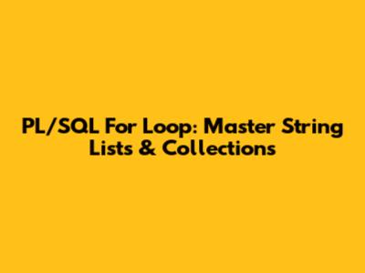 Hey guys! Ever found yourself staring at a bunch of strings in PL/SQL and wondering, "How do I go through all of these, one by one, efficiently and easily?" Well, you're in luck because today we're diving deep into mastering the PL/SQL FOR loop for string lists and collections. This isn't just some academic exercise; this is about equipping you with super practical skills that you'll use constantly in your database development journey. Whether you're processing a list of customer names, a batch of product codes, or a series of error messages, knowing how to confidently loop through string collections is a total game-changer. We're talking about making your code cleaner, more readable, and honestly, way more fun to write. So grab a coffee, settle in, and let's unravel the power of PL/SQL FOR loops when dealing with those tricky string data types.