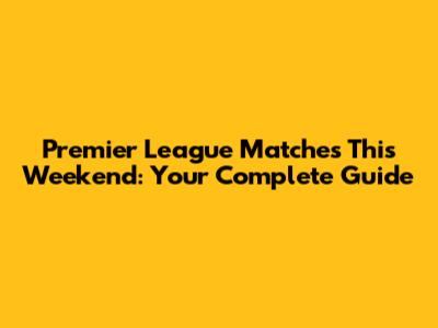 Premier League Matches This Weekend? Your Guide