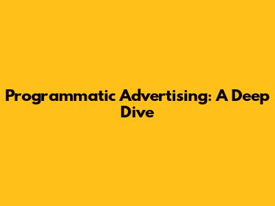 Programmatic Advertising: A Deep Dive