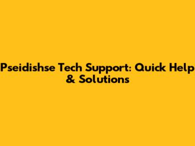 Pseidishse Tech Support: Quick Help & Solutions