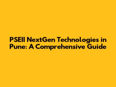 PSEII NextGen Technologies In Pune: A Comprehensive Guide