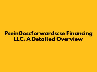 Psein0oscforwardscse Financing LLC: A Detailed Overview