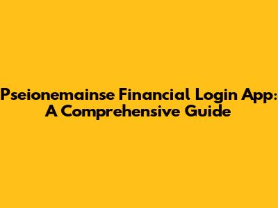 Hey there, finance enthusiasts! Ever feel like managing your money is a bit of a maze? You're not alone! That's where the Pseionemainse financial login app swoops in to save the day, making your financial life smoother, more organized, and dare I say, even enjoyable. We're diving deep into everything you need to know about this handy app, from the nitty-gritty of logging in to the cool features that set it apart. Buckle up, because by the end of this guide, you'll be a Pseionemainse pro!
