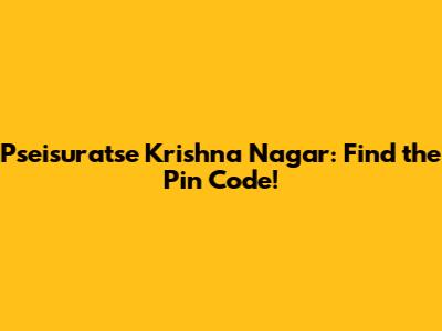 Pseisuratse Krishna Nagar: Find The Pin Code!