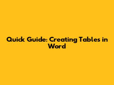 Quick Guide: Creating Tables In Word