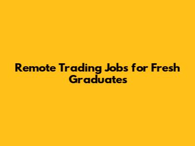 Remote Trading Jobs For Fresh Graduates