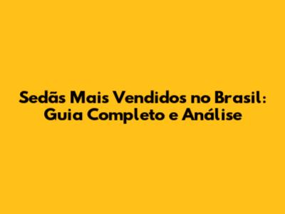 Sedãs Mais Vendidos No Brasil: Guia Completo E Análise