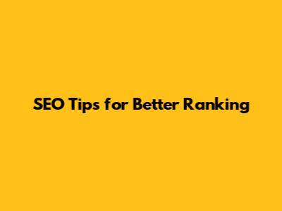 SEO Tips For Better Ranking