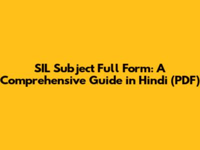 SIL Subject Full Form: Hindi PDF Guide