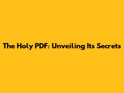 The Holy PDF: Unveiling Its Secrets