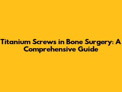 Titanium Screws In Bone Surgery: A Comprehensive Guide