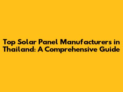 Top Solar Panel Manufacturers In Thailand: A Comprehensive Guide