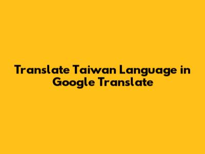 Translate Taiwan Language In Google Translate