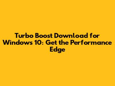 Turbo Boost Download For Windows 10: Get The Performance Edge