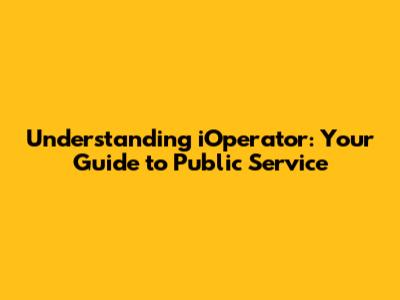 Understanding IOperator: Your Guide To Public Service