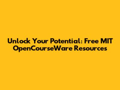 Unlock Your Potential: Free MIT OpenCourseWare Resources
