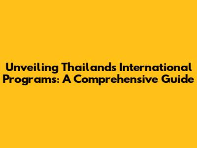 Unveiling Thailand's International Programs: A Comprehensive Guide
