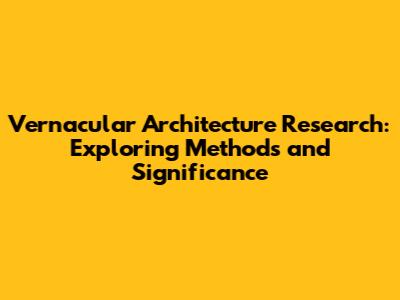 Vernacular Architecture: Research & Key Methods