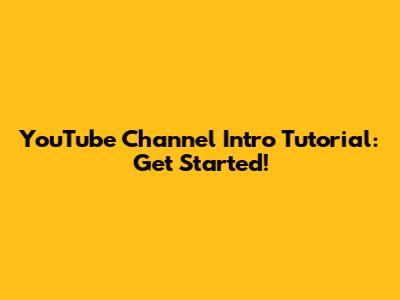 YouTube Channel Intro Tutorial: Get Started!