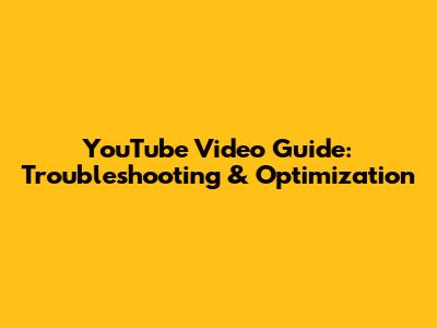 YouTube Video Guide: Troubleshooting & Optimization